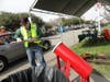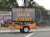 Santa Clara County Sheriff Sgt. Nellie Davis explained only drivers in vehicles could turn in guns for cash and that no individuals on foot were being allowed to walk in to the fairgrounds with weapons, the entrance beefed up with extra security.