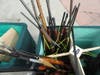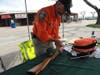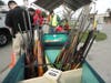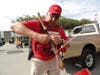 The line of cars moved slowly on the dirt grounds. Some drivers waited more than two hours to finally make it inside the fairgrounds' promenade area where six stations had been set up to take the weapons.