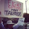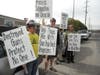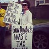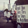 "This is a monumental waste of taxpayers' money," said Mark W.A. Hinkle, one of the protesters holding a picket sign that said, "Legal gun sales through gun shops pay much more."