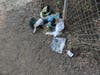 The garbage has been left lying beside the chain-link fence where the gate to the trail's entrance is located.