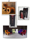 Selected for their sculptural shape and eye popping color, these chairs are actually made from recycled seat belts. Available in a variety of colors (only a few key colors are displayed below), they are manufactured in both indoor and outdoor quality, dining chair and barstool height, rocking chair and ottoman. These chairs are surprising affordable if you want a statement piece that is sturdy and artistic at every angle!