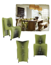 I'm crazy about The Hunger Games trilogy. I think the concept is provocative and disturbing and I'm intrigued by the stark contrast of the coal mining appalachian District 12 with the ostentations and overtly gaudy Capital residents' lifestyles. If you've seen the first installment you'll agree that The Capital is a visual circus. From the fashion to the makeup to the living quarters, nothing is left untouched by Bling! In one scene the tributes are shown to their living quarters and the dining chairs actually steel the scene all on their own!