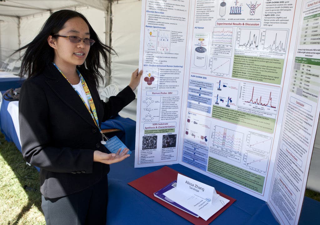 Saratoga High School student Alissa Zhang, a top-10 nationwide winner of the prestigious 2012 Intel Science Talent Search contest, was among 26 high school students from across California who on Wednesday showcased their original research projects on the south steps of the State Capitol.