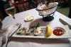 Décor: The restaurant is swathed in painted-desert colors with high ceilings and crown molding. The large dining room is furnished with comfortable padded chairs with tables dressed in linen. There is a patterned carpet with a raised circular motif and there are several dining areas that are sectioned off to create and intimate feeling no matter where you are seated. In addition to the dining room, one can choose to eat at the bar, or outdoor patio.