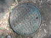 First let's look at a common West Valley Sanitation District, Los Gatos Creek Trunk Sewer cover. This is the real deal, about two feet in diameter, about an inch and a half thick, cast iron, weighing about 150 pounds. It is marked S for Sanitary.