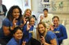 They may be tough on the field but the women of the San Jose State University Soccer Team were smiling and giggling at the antics of one patient at the Kaiser Permanente Santa Clara (California) hospital during a goodwill visit recently.