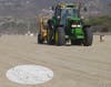 The problem is that WSPs evolved to live on barren sandy beaches. Their habitat is now crowded with hundreds of millions of human visitors every year, humans involved in their own pursuits – surfing, swimming, sunning, walking, tossing Frisbees, letting dogs run free – humans oblivious to these tiny residents of the beach, residents who simply were not built for this. They have other problems: regular beach grooming which removes the wrack, vehicular traffic, predators attracted to human refuse. Dugan and Hubbard (2003) found that Snowy Plover abundance on southern California beaches was positively correlated with the mean cover of wrack and abundance of wrack-associated invertebrates. They also found (2009) that beach grooming increased beach erosion and the need for beach replenishment. Perhaps local beach authorities could help the plovers – which are, after all, a threatened species – as well as reduce cost for sand replenishment by ending large-scale grooming (see photo above) of the beach around plover roosting sites.
