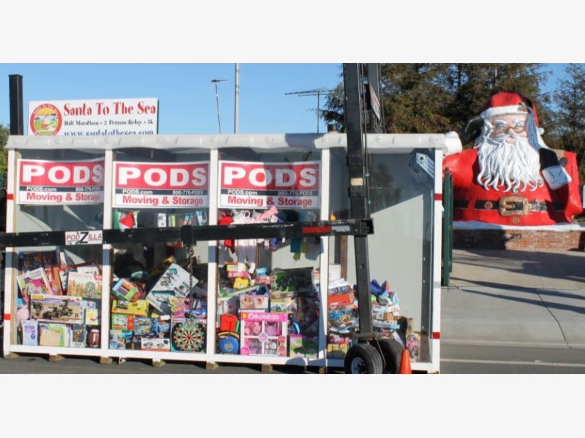 Despite the race being cancelled last year due to the air quality caused by the Thomas Fire, the community showed an outpouring of support by donating over 1,000 toys that were stacked high in the PODS containers.