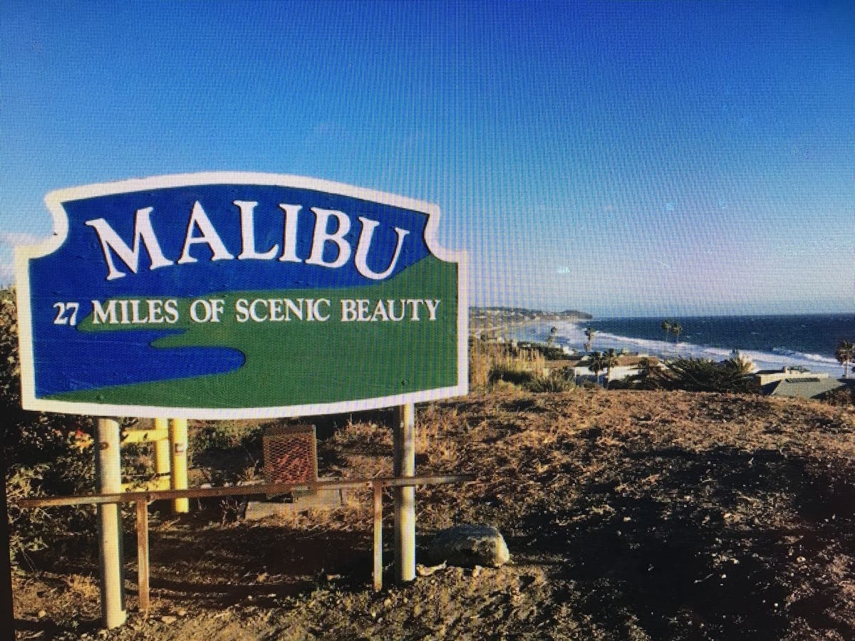 The sign says that Malibu has "27 miles of Scenic Beauty".