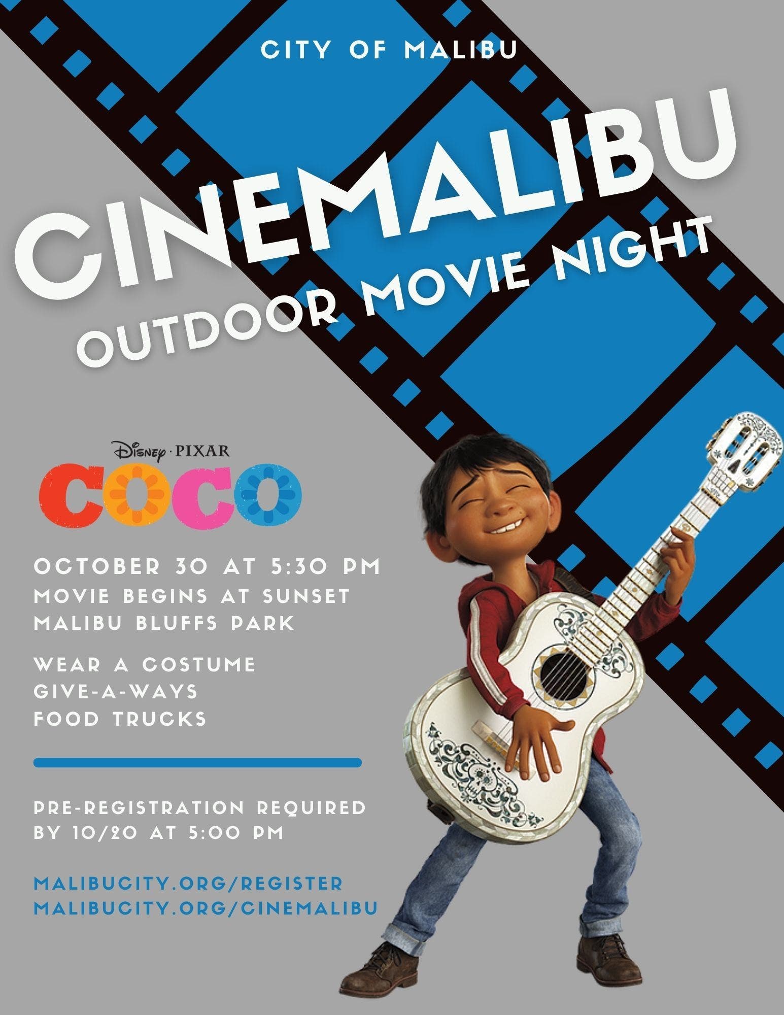 Outdoor movie, food trucks & giveaways on "CineMalibu" agenda, and costumes encouraged! Pre-registration required ...