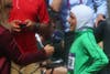 Running in a green track suit with her head covered, the 19-year-old Attar finished last among the eight runners in the sixth and final heat of the women's 800 meters in London in two minutes, 44.95 seconds, 43.91 seconds behind the heat winner, Janeth Jepkosegi Busienei of Kenya, and 32.39 seconds behind Elisabeth Mandaba of the Central African Republic, who finished next to last.
