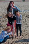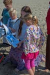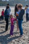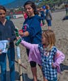 At the beach, the kindergarten students team up with Malibu High School biology researchers in Bob Perry's class who are conducting their regular weekly analysis of the marine life at Zuma.