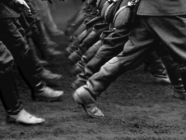 Fascist leaders often wear military garb to all public events. They need armed guards and military parades to remind their citizens of their power. A totalitarian leader says things like: