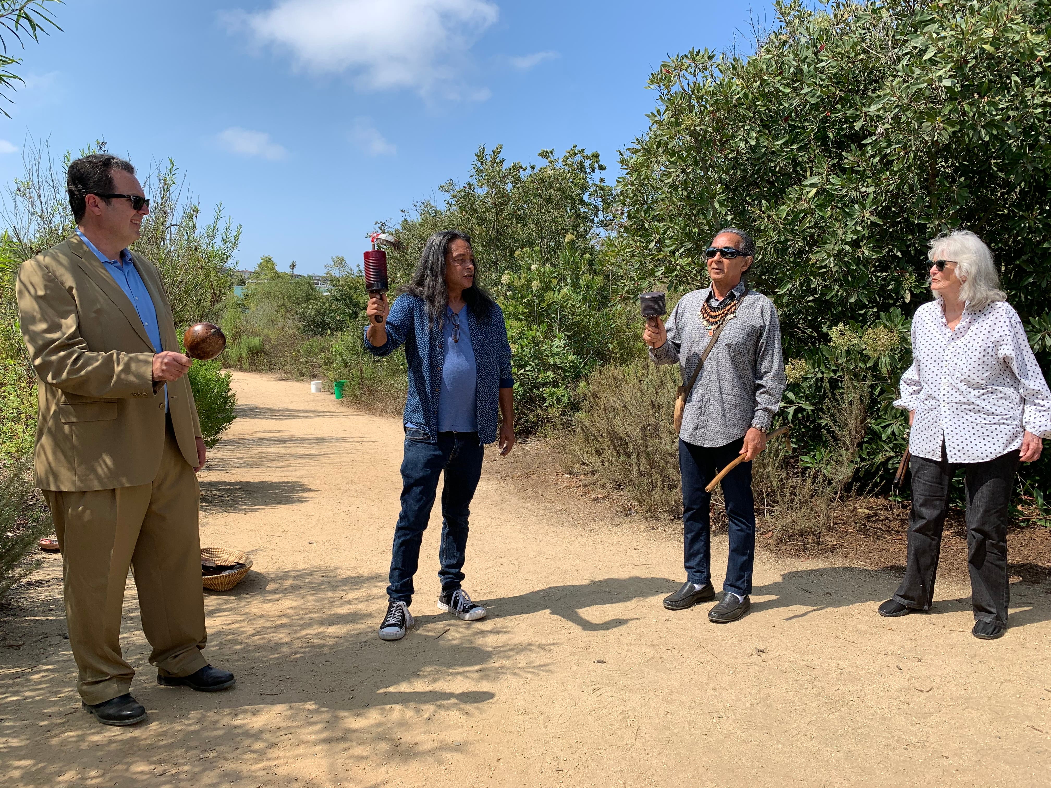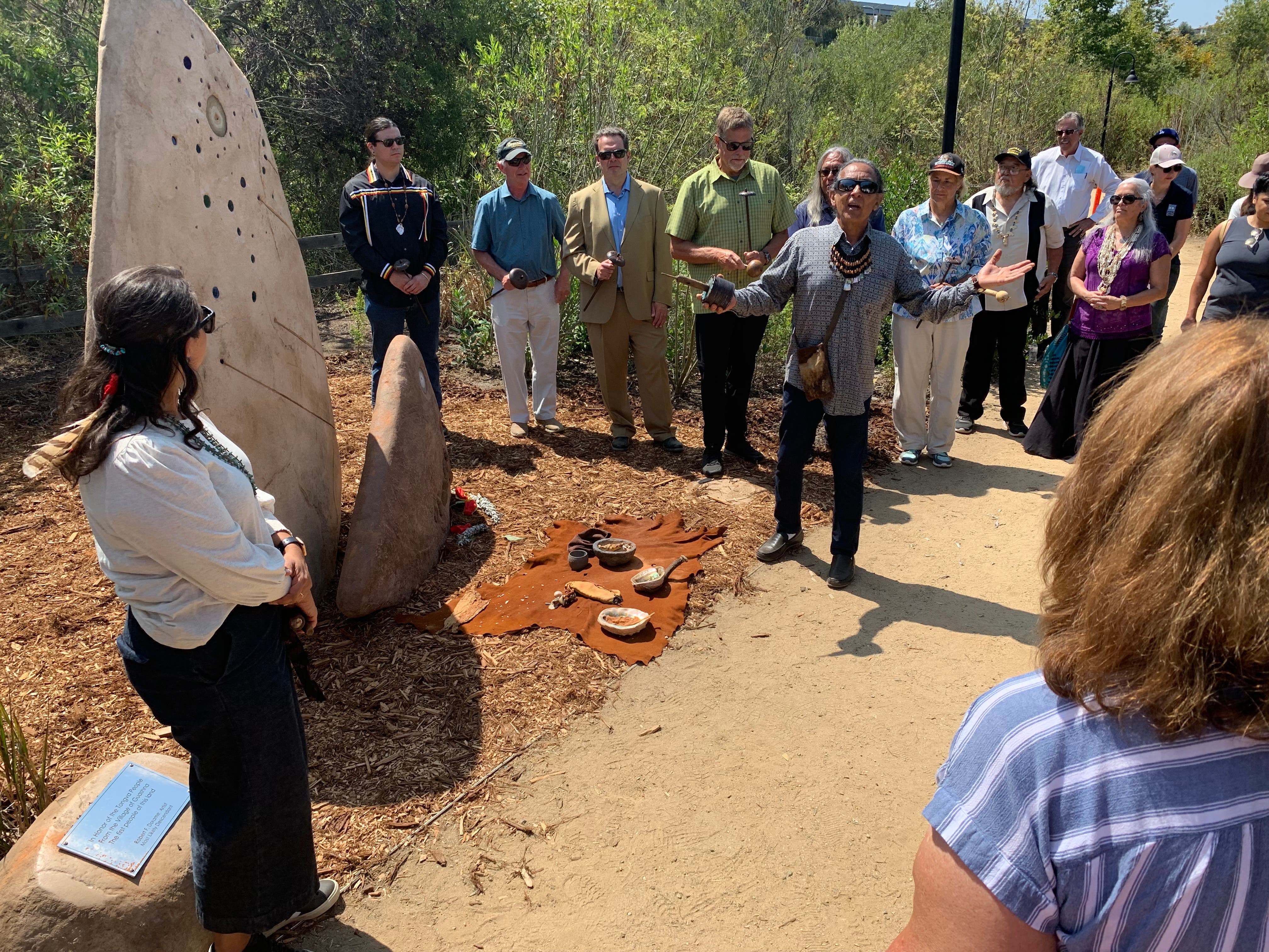 (July 15, 2021). In a touching ceremony attended by a small group of invited guests, members of the Tongva-Gabrielino nation of indigenous people honored their ancestors by dedicating a monument in Ballona Discovery Park. The monument rests near the sacred burial site where the ancestors were reinterred over a decade ago, not far from the site where they were uncovered during Playa Vista construction.