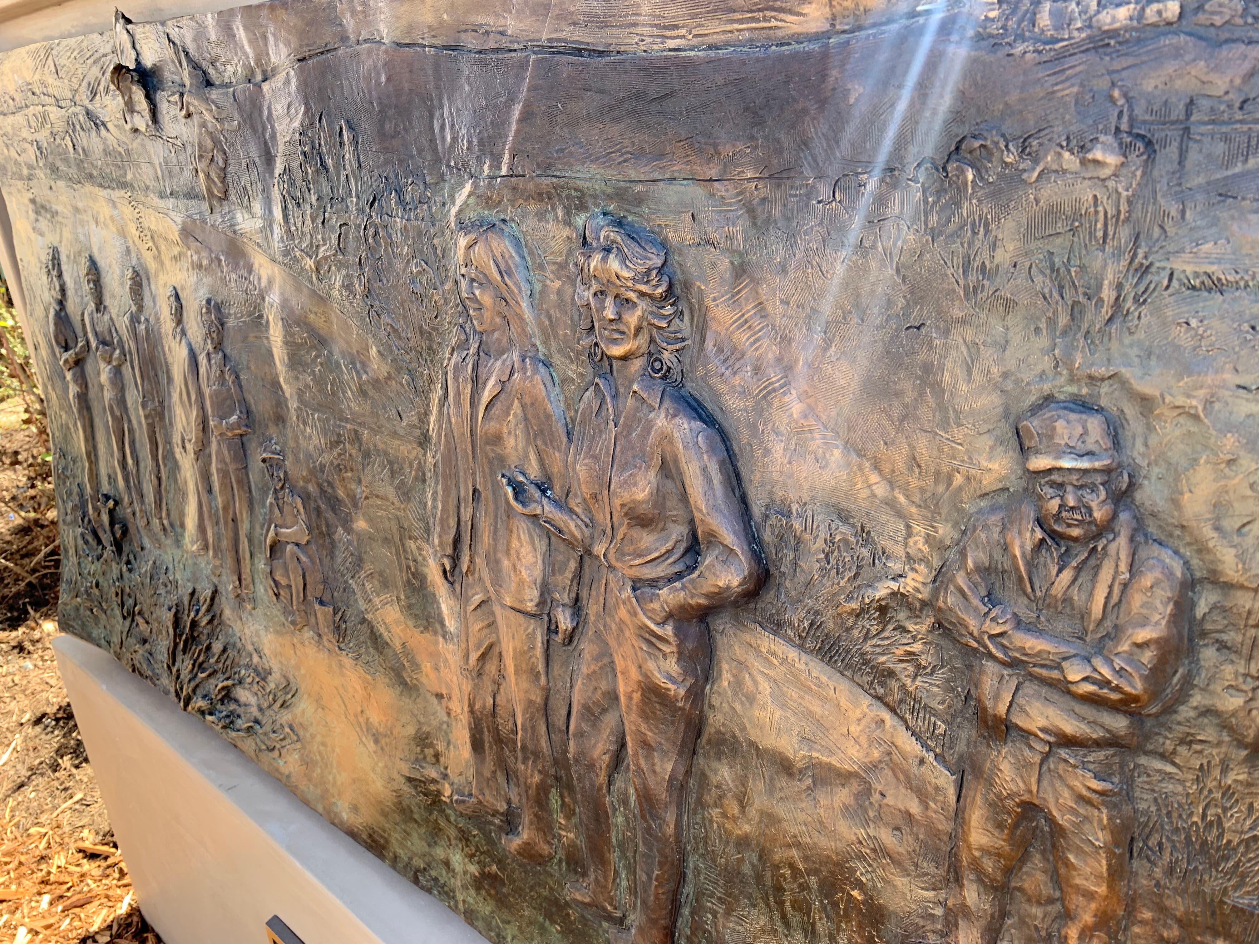 Above: Bronze sculpture on the monument recalls an early meeting of Friends of Ballona Wetlands founders.