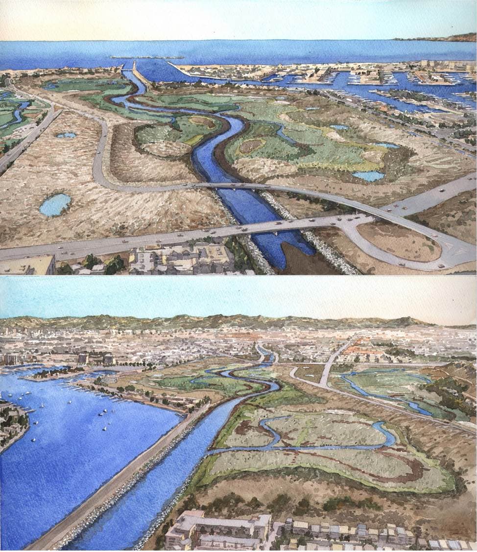 Above: Artist’s rendering of the completed Ballona Wetlands Restoration Project