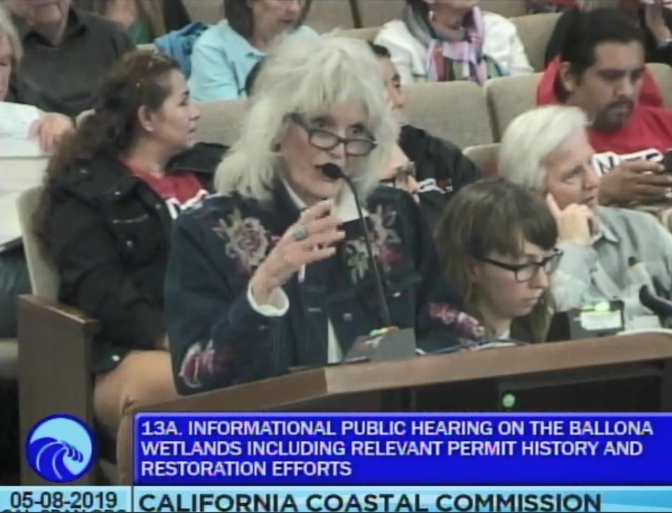 Above: Ruth Lansford, heroine and Founder of Friends of Ballona Wetlands, addresses the California Coastal Commission on May 8, 2019.