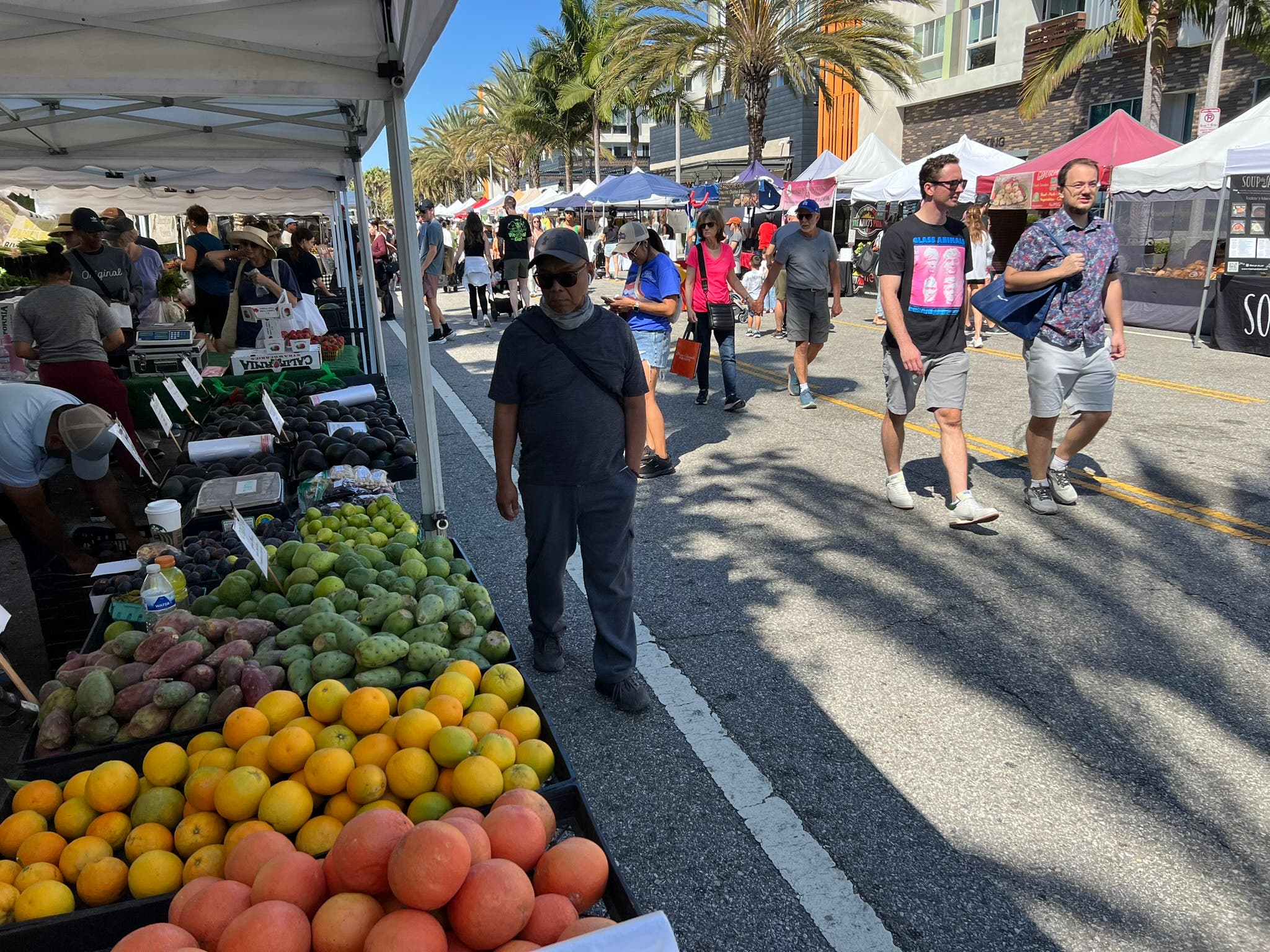 Below: The Playa Vista Farmers Market is a popular gathering place on Saturdays