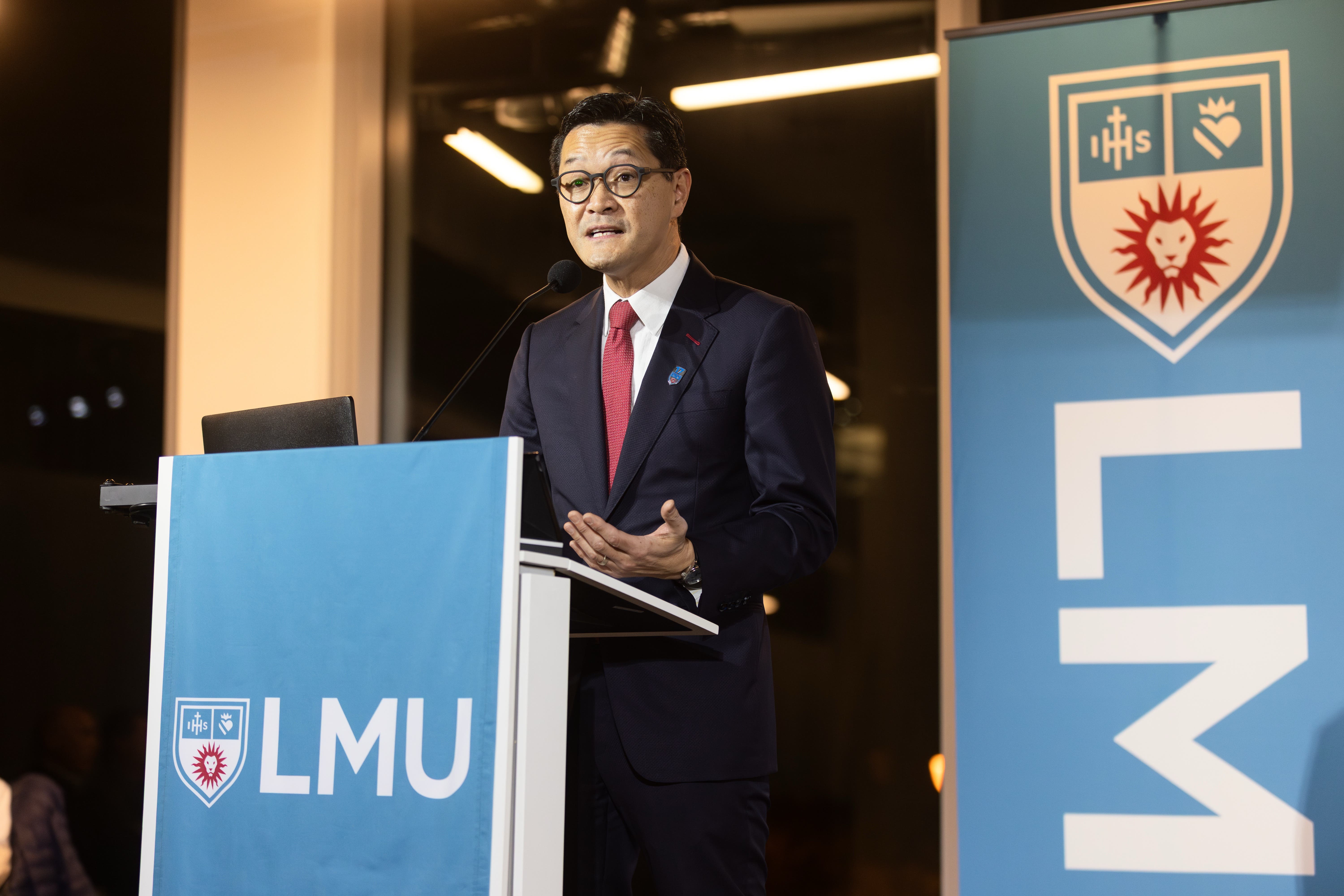 Above: LMU President Thomas Poon, Ph.D., kicked off the symposium. Photo by Devin Feil.