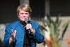 Brownley introduced Osborn to a crowd of more than 100 supporters as a "seasoned candidate" with more than 40 years of experience working for social change. Osborn then outlined her priorities for change in California on the issues of education, the environment, health care and civil rights. She supports raising taxes to achieve these goals.