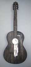 "Since the construction of a guitar follows very specific guidelines, guitar makers get to express their artistic individuality through the designs of the rosette, the bindings on the sides and the headstock," Ayers explained and pulled out a guitar with an exceptionally beautiful headstock in black with carved ornaments.