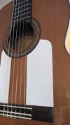 The flamenco guitars look fascinating, with their large tap plates in white and clear plastic. The plate shields the delicate wooden body underneath from all the aggressive strumming and rhythmic slapping that comes with the playing style. Flamenco guitars that are collectible can cost forty or fifty thousand.