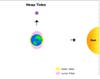As you see from watching a liquid slosh in a bucket, water has a lot of inertia, so the highest tide is delayed by about a quarter of the daily cycle. For any point on the globe, the day’s highest tide occurs about an hour after the moon has set there. On the side of the earth opposite the moon, inertia causes water to pile up, creating a high tide there as well, but that one isn’t as high as the tide closer to the moon.