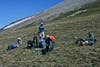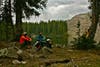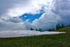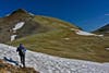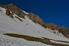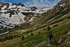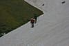 I shot down trail giving a quick glance to Wyoming and headed across a steep, scree slope, never looking back again. We all camped just above the ski resort at the pass and made dinner, but Wyoming didn’t show up. Eric, always looking after us slower ones, headed back down trail and waited near a bad snow patch, but no Wyoming.