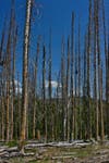 Forests gave way to vistas and valleys, waterfalls and the far off snow capped peaks, our ultimate destination. At the relatively low elevation of 10,000 feet, flowers bloomed and the corn lilies were already half grown. Grass and muddy meadows with squishy hummocks of last years growth for stepping stones, gave us all wet feet. Some of the forest was completely dead from the devastation of the bark beetle, while other areas were deep green, but the trail was beautiful, dead and alive.