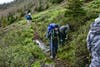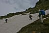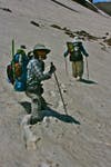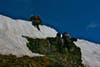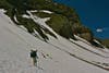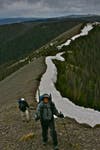 Often the trail would disappear under the large banks of snow still covering the north sides of the mountains at which point we had to decide whether to attempt a traverse through snow, which had the consistency of mashed potatoes, or climb far down to the valley floor and hike back up through wet meadows to regain our path further along. Blister usually just headed out onto the snow, while Eric often chose the lower, safer route, and the rest of us split on who to follow. Brooks, also a very strong hiker, often picked a route of his own, and it was always a crap shoot who would regain trail first.