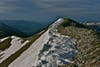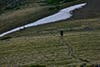 For days more our path led us across the rolling tops of the Rockies, past the Window, a cut in a mountain that looks just like its name, and over snowy cornices still perched on the sheer sides of the Divide. At one particularly bad cornice we scrambled up a tongue of rock and then kicked steps in the vertical face of snow and crawled over. So as not to collapse the cornice, Eric lay on the top and proffered his foot to Wyoming to grab hold of as she inched over the icy overhang. After that one, I sang my “Nobody died, nobody died” song and the relief was palpable.