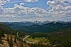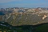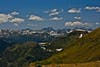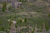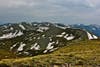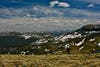 The next morning we climbed to 13,000 feet and hiked just above or below that, rarely dipping beneath 12,000 in mountains very different from the High Sierra. In the Sierra, anything over 10,000 feet becomes peaks and crags. Here there are jagged summits, but often the highest points are rounded, tundra covered meadows, rolling along for miles. The High Sierra is so much newer that only the granite domes of Yosemite are smooth on top, and almost nowhere has soil built up at elevations above 10 and 11,000. The much older Rockies have been pulverized not only by glaciers, but by time itself, breaking down the old rock into sand, gravel, and over the eons of biological work, soil. There was a pastoral quality to the high country in the Weminuche Wilderness and we saw elk grazing along the ridges, and moose in the wetter valleys.