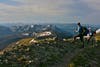Breaking out of the last of the forest, we found ourselves hiking along rolling bluffs, often sheer cliffs on one side, still holding onto remnant snowy cornices, with rounded Alpine meadows on the other. We were on the Continental Divide and I could spit into the waters of the Atlantic on my right hand and into the drainage of the Pacific on my left. Through this amazing wilderness, we would walk for days along the center of the continent, now dipping to cross the saddle of a pass, traversing along one side or the other, but always returning to that rolling crest and an unparalleled vista onto peaks and mountain ranges in all directions.