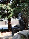 The park is surrounded by a cathedral of twenty redwood trees, with Muir in the center. The circle pathway around the structure allows you to view the sculpture of Muir from every angle. Although there are streets on both sides of the memorial, there’s a feeling of being alone in nature, of being in a place that is at once untouched by man, and equally touched by the spirit of a man that helped to protect the beauty inherent in nature.