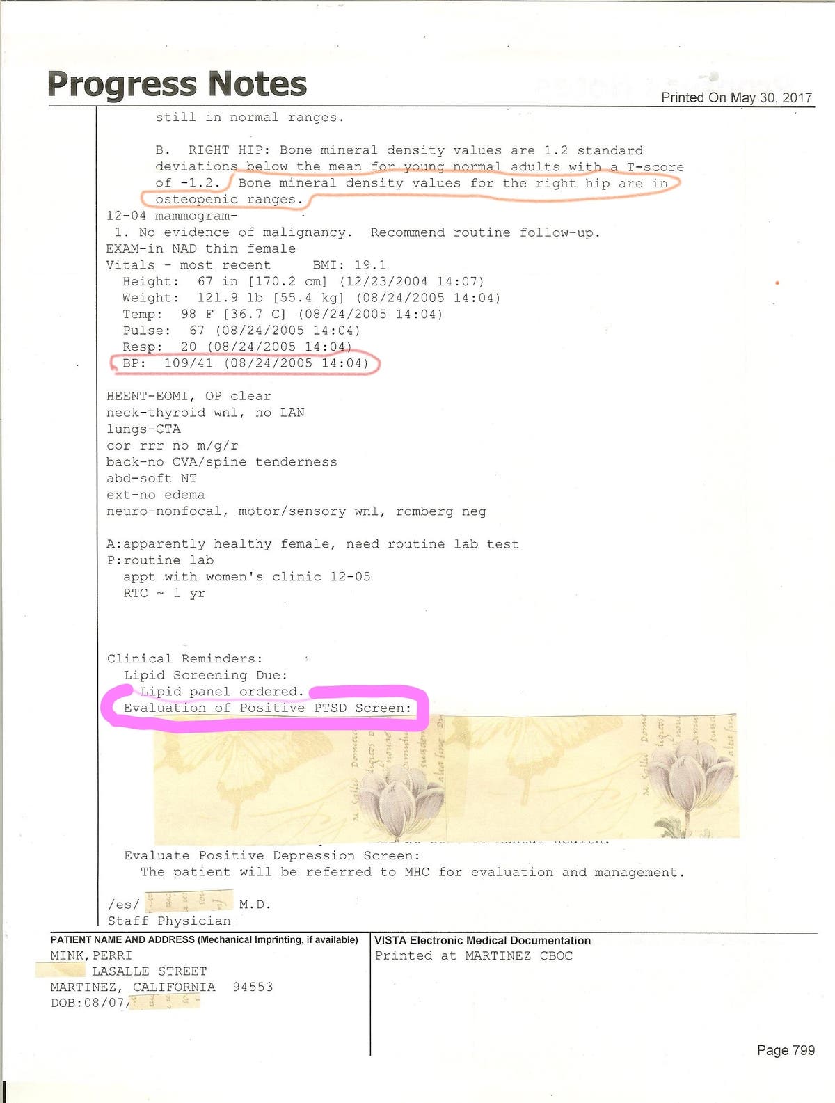 About the photo below: In August 16, 2017, I posted my VA medical record from August 24, 2005 entries by a male doctor, that I have a "Evaluation of Positive PTSD Screen:", and "Evaluate Positive Depression Screen: The patient will be referred to MHS for evaluation and management", yet, once I got to VA Mental Health Services (MHS) they never diagnosed me with PTSD, never addressed my PTSD, never talked about my PTSD symptoms, and I never received treatment for my PTSD, and instead Dr. Victo Cizanckas wrote in my records, the last entry for MHS at that time of December 2, 2005, noted as "Computerized Problem List...", "1. Dysthymic Disorder", "2. Major Depression". I just looked up "Dysthymic", and that disorder means that, "...You may lose interest in normal daily activities, feel hopeless, lack productivity, and have low self-esteem and an overall feeling of inadequacy.", quote from Mayo Clinic (Click here for "Persistent depressive disorder"). Both Dysthymic and Major Depression can keep a person from working and paying their bills. How can I be this depressed if I was working 1 to 4 jobs at one time for decades, enjoying working at the auto parts store, creating art work, designing, building my own beautiful furniture, DIY my own condominium home improvements, taking care of beloved fuzzy family members, engaging in wonderful hobbies, such as, photography, sewing, knitting, and gardening, and I was once referred to as, I ("You") "have the Midas Touch" because when I work at something it turns to good, volunteering in the community, being flexible, confident, and positive about the unstable job market and patiently waiting for another legitimate job to open after losing a job to company buyouts, store closures, resigning due to CFO corruption and downfall changeovers, and having positive energy to start my own business assisting senior citizens that turned out to be my niche, and building up a credit score of 820 regular and 802 auto by the age of 45? Studies have also shown that women who get breast implants have very low self esteem and have a higher incident of suicide. I have always expressed with surety that I do not want breast implants. Furthermore, since I went to VA MHS for my PTSD, from September 2005 to December 2005, gradually and frustratingly, I was NOT getting the services I needed and finally expressed that in December at my last session and I just read their entries that state that I had a "black-and-white theme of a person being all good or all bad continues." This is a cop-out to never providing services for my PTSD which causes me great physical pain at times. They also state that I "blamed the clinician, (a male intern) for "only focusing on the negative.", another EXCUSE for not providing rightful services. Yet, nowhere in the record do the professionals talk about my Anxiety and PTSD that can be triggered to physical shaking, which is very painful. These gov employees/doctors are a total waste of tax-payer's money and vehemently want to unhelp as they practice their Cruel M.O. of their DESTRUCTIVE PATH, and never promote success, hoping I would become non-existent, which is the total opposite of what the American service requirements and tax money is for. Then, all of a sudden in October of 2013, Dr. Rita Hargrave, at the VA MHC, entered in my record, "Diagnosis: Delusional Disorder; Depression NOS", and "Axis I: Delusional disorder by Hx", and "Axis I: R/o psychosis NOS", knowing that all of those entries are lies. The truth is the secret demonic sexualizer who works in the U.S. government has Major Depression, Borderline Personality Disorder (thinks they are right, even though they are wrong), and Antisocial Personality Disorder (thinks they can do whatever they want, even obliterate their target(s), and get away with annihilating their target(s)), and homicidal, like Judge Barbara Zuniga and attorney Jane Elliot, Judges; Mary Ann O'Malley, Clare Maier and Diana Becton and Commissioner Judith Sanders. They steal tax-payer's money so they can live-it-up and their destruction and deprivation of services is to make huge amounts of money for themselves at their target(s)(patients)(tax-payer's) expense - Same criminal concept for both government and private medical care sector.