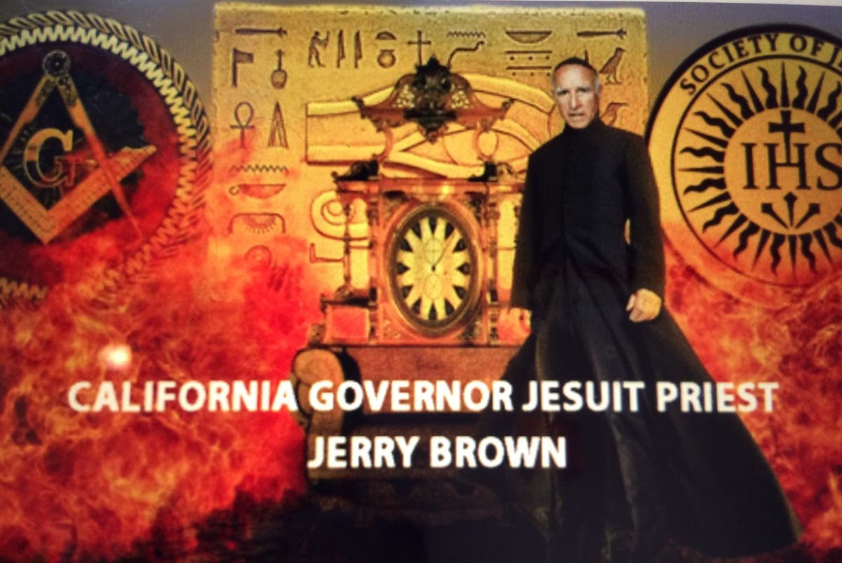 Is California Governor Jerry Brown an acting honorary Jesuit Priest and gathering secretly to terrorize people in our society away from decency and instead practice secret demonic sexualizing, and human and animal sacrifice by veterinarians?