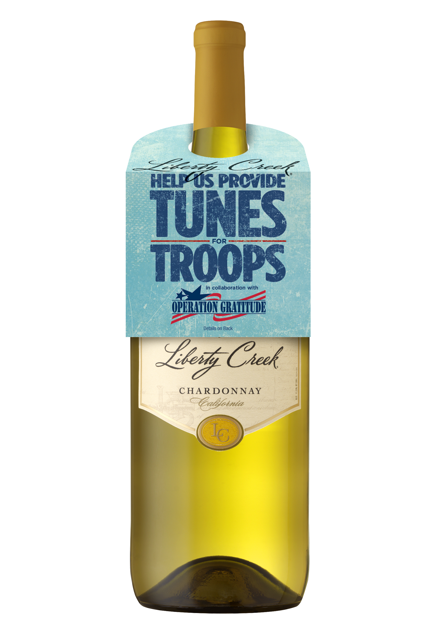 Country music compilation CDs were specially made for this part of the “Tunes for Troops” program, which helps Operation Gratitude include music in the care packages they send to troops around the world. Consumers can get involved by purchasing specially tagged bottles of Liberty Creek Wine and visiting www.LibertyCreekWine.com to enter the unique code found on the tag. Liberty Creek will then donate $1 per code so that Operation Gratitude can include these country music CDs in their care packages! Choose one of nine great-tasting and affordable wines in a vibrant, fruit-forward portfolio: Chardonnay, Merlot, Cabernet Sauvignon, White Zinfandel, Sweet Red, Pinot Grigio, Pinot Noir, and New Moscato and Pink Moscato.