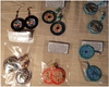 They had made more of the taka taka earrings, even cleverer and more fun than the ones before. Basically they are made on painted, flattened bottle caps, with very odd little things in the middle. The ones that first caught my eye had tiny painted egg shell pieces arranged in a colorful mosaic (upper left). Another had colored pencil shavings carefully arranged in a circular pattern (top center) and a third had the detritus from drilling small holes in the bottle caps for the hooks. They are painted with shellac and baked in muffin tins. This may sound very dull, but see for yourselves below. Lydia and Wilco crack me up with their “use it up, wear it out, make it do” determination. She told me of a muffin baking in which she noted some leftover juice and some cold coffee, so she added them to the mix in place of some of the milk. “I just hate to waste anything,” she explained. Taka taka means stuff, junk.