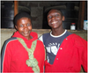 Just as we were leaving the compound, deputy Peter called to say they had a medical emergency and could I bring a girl back to the hospital, along with Esther and Andrew (teacher on duty for the evening). There was no way 5 guys could sit in the far back of my little Toyota Rav 4, so I ended up with just Simon and Patrick, who had been in my kitchen doing research on WW1 and WW2 on my computer when all this came down. Above is Simon in the kitchen with Ruth. The kids love to have their pix taken and then giggle when they see themselves. Patrick is in the dining hall, doing his homework.