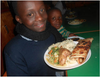 Another difference is the amount of food people eat. I’ve noted before the huge plates of food consumed by the small children here at Mji Wa Neema. Where do they put it? If I ate that much food I’d be shopping for a larger wardrobe very shortly, but these children don’t seem to be overweight. Here is Tylon, flanked by Joseph, with his plate of rice, veggies, chicken and chappatis, taken the night Fr. Peter joined us for dinner. This was topped off by several servings of ice cream and a pile of biscuits.
