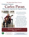 The Menlo Park Library will host a free musical performance on September 9 featuring composer/guitarist Carlos Pavan, playing music from Argentina, as well as his own original works.