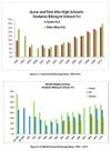 Palo Alto middle and high school students rely more heavily on bicycling than walking, because on average, they must travel farther to get to school than elementary school students. The percent of PAUSD middle school children who bike to school increased from 15 - 25% in 2000 to 35 - 60% in 2011 (the variation is due to the difference in the schools' locations and size of attendance boundaries). The percent of PAUSD high school students who bike to school increased from 10 - 15% in 1999 to 35 - 40% in 2011.