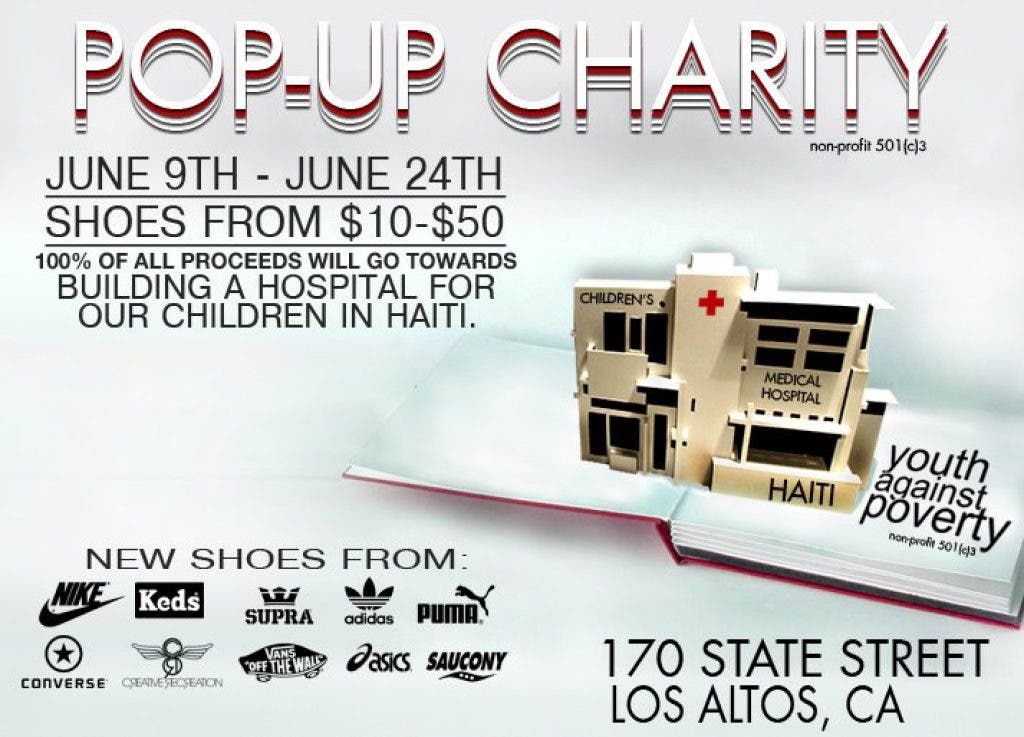 On June 9th, Los Altos will host a charity pop-up featuring Youth Against Poverty (YAP) at 170 State Street. St. Francis student Shawn Esmaili founded YAP as an organization dedicated to connecting teenagers like Esmaili with children in need around the world. The organization has now reached out to the residents of Los Altos to help the children and orphans of Haiti and will be selling shoes for a heavily discounted $10-$50, from brands such as adidas, Converse, Puma, Nike, Supra, New Balance, Asics, Saucony, Vans, and Creative Recreation in the temporary store. What is different about YAP? All of the proceeds from the sale will go towards building a medical clinic in Haiti, a country which is ridden with cholera, malaria, tuberculosis and AIDS and in critical need of clean, modern medical facilities.
