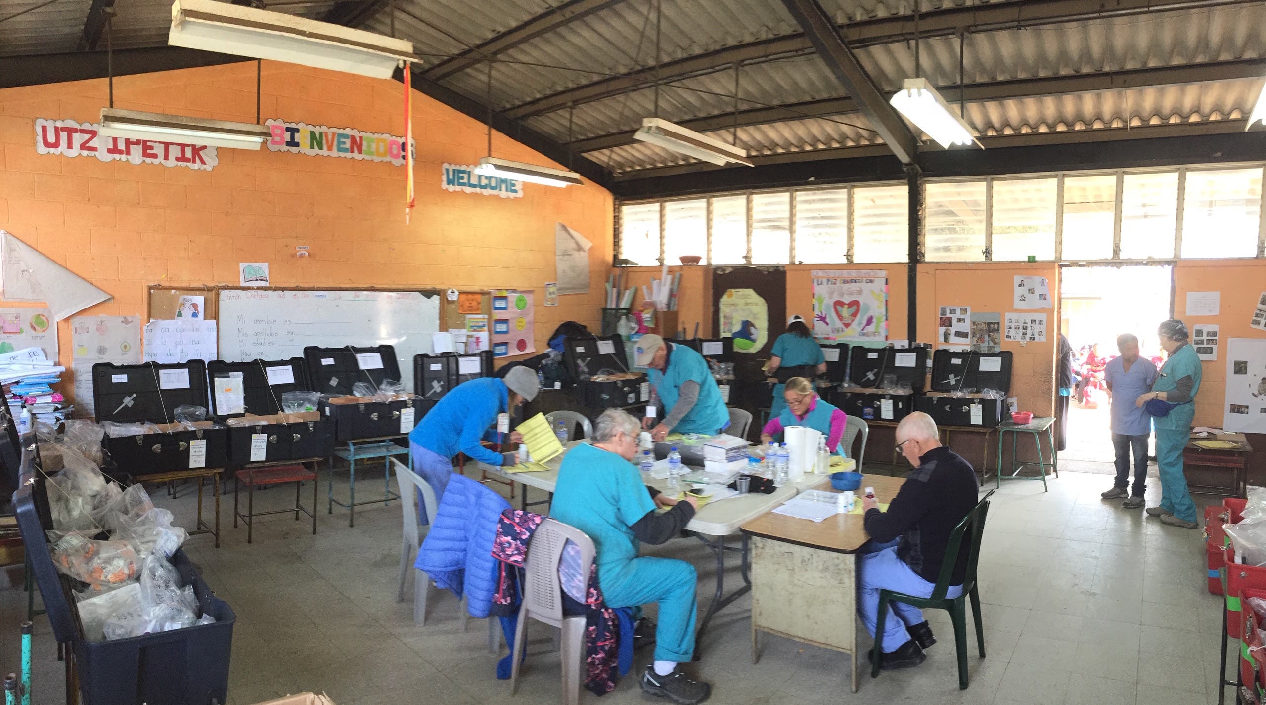 The team set up their clinics in the department of Totonicapán, at the 8,000-foot level of the Sierra Madre in Guatemala. Much of the economy is textiles, made by home artisans, and wheat or maize farming. Many of the younger residents immigrated to the United States long ago, and now send home money home to relatives in Totonicapán