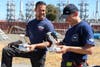 Photo 1 ā Menlo Fire Captain Chris Dennebaum (left) and Romeo Durscher with DJI (right) train together using DJI Drones at the Fire Districts Training Center near the Dumbarton Bridge.