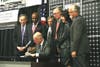 Senator Joseph Simitian's renewable energy bill was signed into law today at the dedication of a new solar panel manufacturing plant.