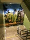 McCalmont says she got the idea from visiting Kaiser Permanente’s Walnut Creek Hospital, where a few large photo murals have been installed in the garage and some external stairwells. She thought murals like those could improve the blank, monochromatic walls of the Santa Clara hospital’s five enclosed stairwells.