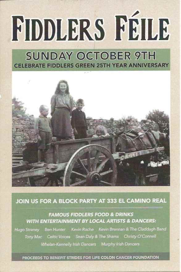 On Sunday, October 9th, PLEASE come join us, to help celebrate the 25th Anniversary of Fiddler's Green Irish Pub in Millbrae, CA.