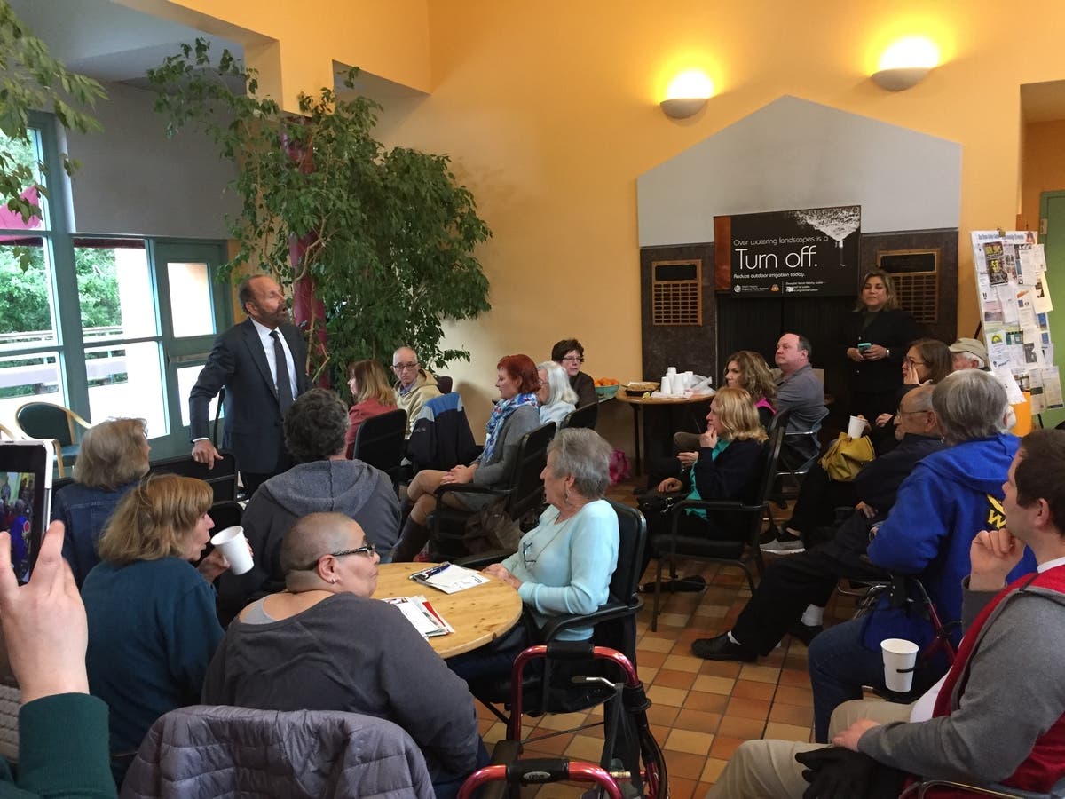 Tuesday April 11 2017 he held a gathering from 5:30 - 6:30 p.m. at the San Bruno Senior Center before the 7:00 p.m. Council meeting