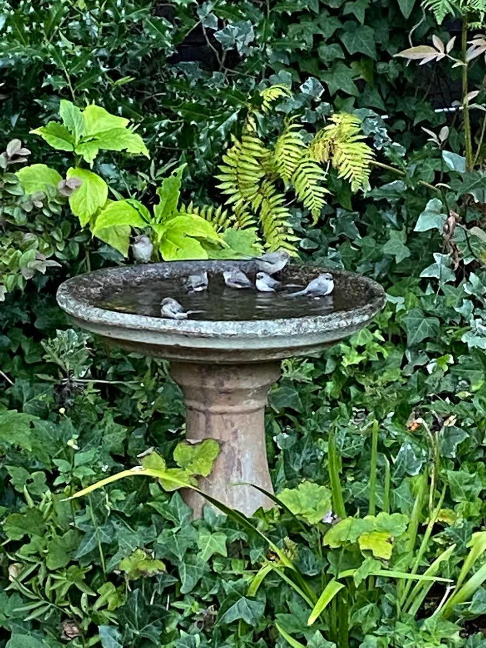 "We have three bird baths and 10 feeders in our garden — free, beautiful entertainment while helping the beleaguered wildlife," said Salisbury, who noted that the birds are bushtits.